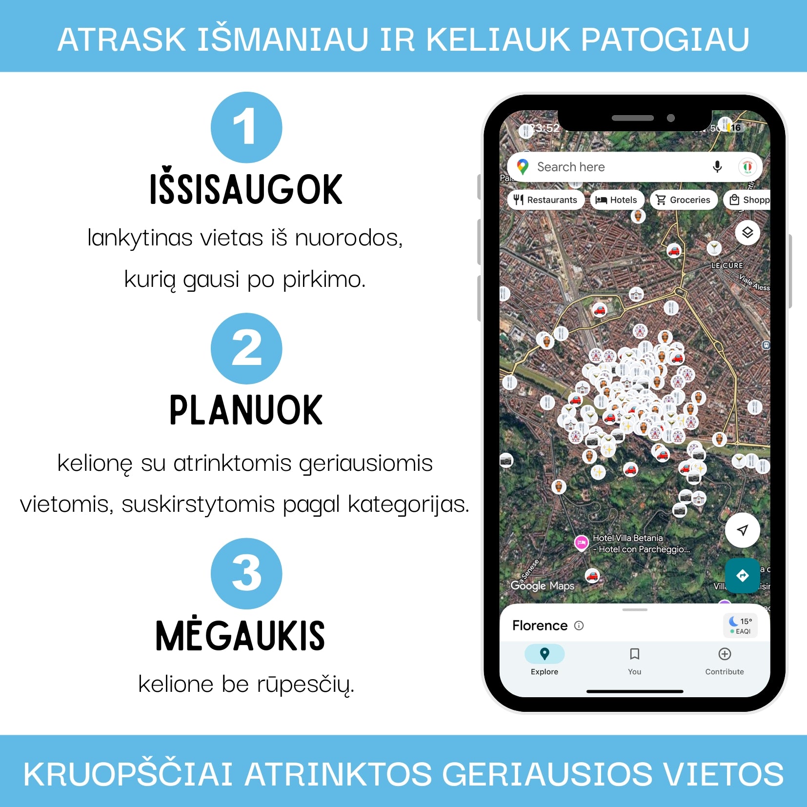 Visos svarbiausios vietos jau paruoštos Jūsų žemėlapyje - sutaupykite laiką ir mėgaukitės kelione, o ne informacijos paieškomis internete.