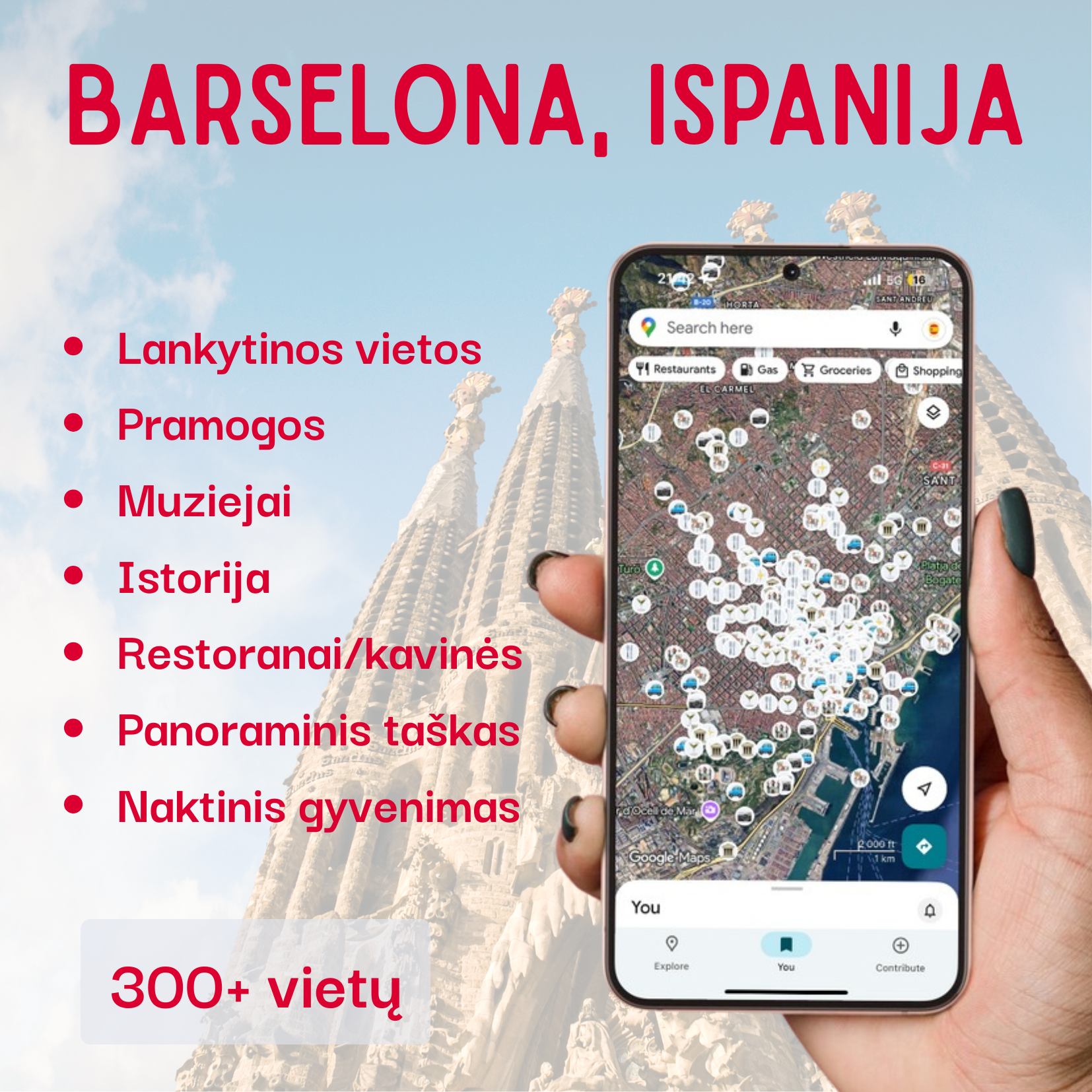 Barselonos turistinis žemėlapis – interaktyvus „Google Maps“ kelionių gidas, kuriame surinktos geriausios vietos Barselonoje (Ispanija). Jis padės patogiai planuoti maršrutus, atrasti įspūdingas lankytinas vietas, muziejus, panoraminius taškus bei geriausius restoranus ir kavines. Žemėlapis paprastas naudoti ir veikia tiek telefone, tiek kompiuteryje.