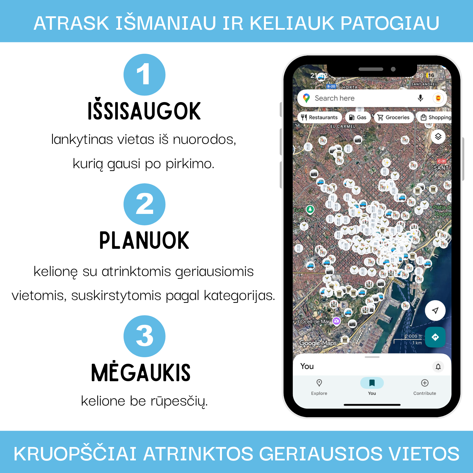 Visi svarbiausi taškai jau paruošti – tereikia atsidaryti žemėlapį ir keliauti!